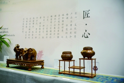 這個(gè)由中國(guó)國(guó)家文化部主辦,中國(guó)對(duì)外文化集團(tuán)公司、曼谷中國(guó)文化中心承辦的“造物記——來自中國(guó)的創(chuàng)意禮物”國(guó)際巡展活動(dòng),精選了來自中國(guó)故宮博物院、中國(guó)國(guó)家博物館、中國(guó)國(guó)家圖書館、中國(guó)美術(shù)館、恭王府、上海博物館6家重點(diǎn)文化文物單位的文化創(chuàng)意產(chǎn)品,正像此前“造物記”在俄羅斯莫斯科展出時(shí)一樣,展覽引來了當(dāng)?shù)孛癖姷臒崃曳错憽T谡褂[舉辦過程中,這些來自中國(guó)的創(chuàng)意禮物不僅贏得了普通觀眾的喜愛,也引發(fā)了當(dāng)?shù)厣虡I(yè)機(jī)構(gòu)洽談落地銷售合作的熱情。