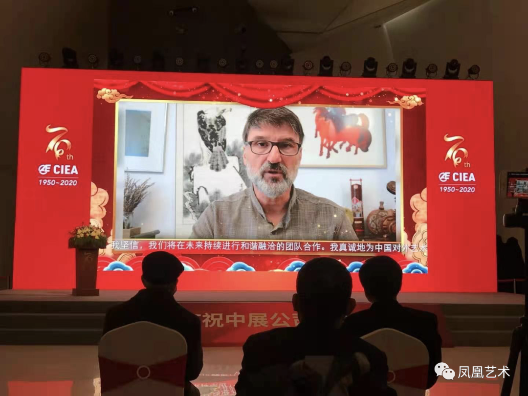 本次活動積極響應疫情防控號召,嚴格進行了人員限流措施,只邀請極少數嘉賓代表到場,其他嘉賓改為線上直播觀看?;顒佑芍袊鴮ν馕幕瘓F有限公司主辦,中國對外藝術展覽有限公司承辦,中央美術學院協辦,中國數字文化集團有限公司、中國人民財產保險股份有限公司北京分公司和上海特銳藝術展覽服務股份有限公司支持。