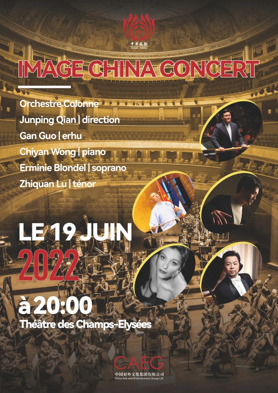 曾帶給法國觀眾中國昆曲、中國舞劇、中國民族音樂會作品的文化交流品牌“中華風韻”,將于2022年6月19日20時,在法國香榭麗舍劇院為巴黎觀眾獻上一場“中法合璧”的音樂盛宴。