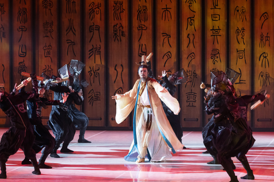 這部劇用中國古典舞的力量和美感,帶觀眾走近孔子和儒家文化,感受到中華五千年文化傳承帶來的深遠影響。開場舞《執羽》,再現了先秦樂舞“羽舞”的宏大場景;男子舞蹈《頌賢》,體現了賢士云集、以文會友、作詩唱賦的逍遙場景;女子舞蹈《采薇》,以仕女們妙曼的舞姿,呈現昔日楊柳青青,四處盎然生機的動人場景;經典的《玉人舞》表現孔子所言“君子如玉”的理想品德,贊頌了光華內斂、不彰不顯的君子人格。