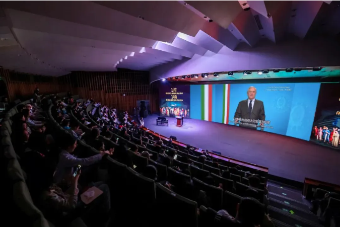 (圖為意大利副總理兼外交與國際合作部部長安東尼奧·塔亞尼發來祝福視頻)